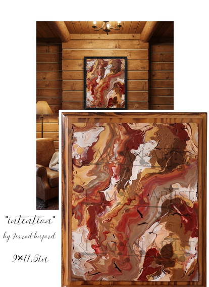 Acrylic pour over wood. This piece was created with thought and thanksgiving for God's Blessings. It symbolizes the artists acknowledgement of His grace and faithfulness as we grow closer to Him in relationship.
